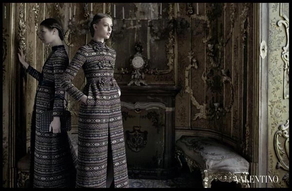 Mια ιστορία μυστηρίου με ρομαντική αύρα - όπως, πάντα, πρoστάζει ο οίκος Valentino - ξετυλίγεται σε ένα ειδυλλιακό palazzo, στο Παλέρμο της Ιταλίας. Η αυτουργός της καμπάνιας, Deborah Turbeville, αποδίδει εξαιρετικά το θέμα, με τα δερμάτινα κομμάτια, τα κεντήματα από κρύσταλλα και τα prints εμπνευσμένα από το Μαρόκο, να διατηρούν εξέχοντα ρόλο στις φωτογραφίες.